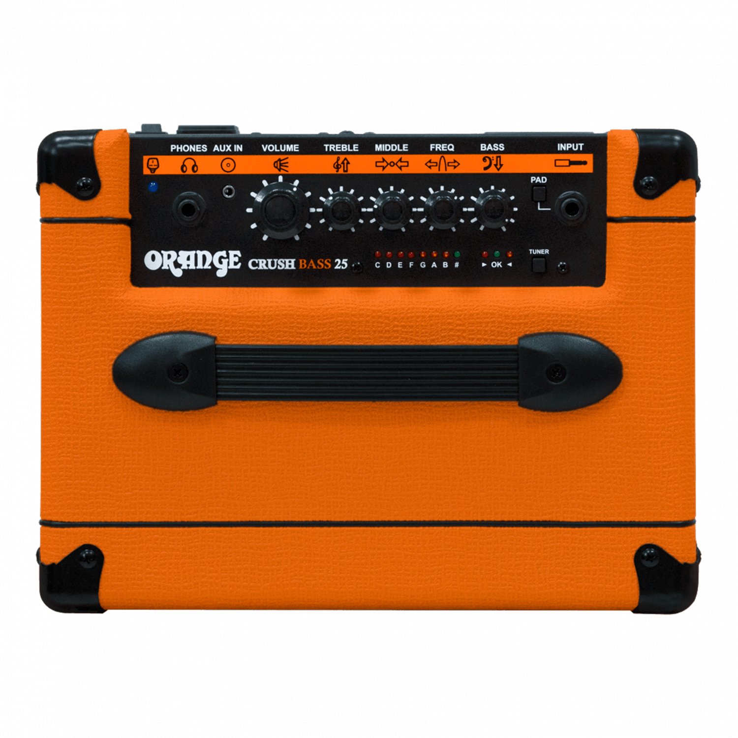 Amplificador con puerto para una mejor respuesta de gama baja y una sección de ecualizador activo de alta respuesta. Como el resto de la gama Crush Bass, la banda media paramétrica variable del amplificador permite un control ilimitado sobre una amplia gama de frecuencias además de los graves y agudos. Marque una amplia gama de tonos de bajo clásicos o cree los suyos propios. Con un sintonizador integrado, una entrada auxiliar para pistas de acompañamiento y una salida de auriculares con nuestro circuito CabSim, el Crush Bass 25 ofrece a todos los músicos la plataforma en miniatura perfecta para perfeccionar su tono.
