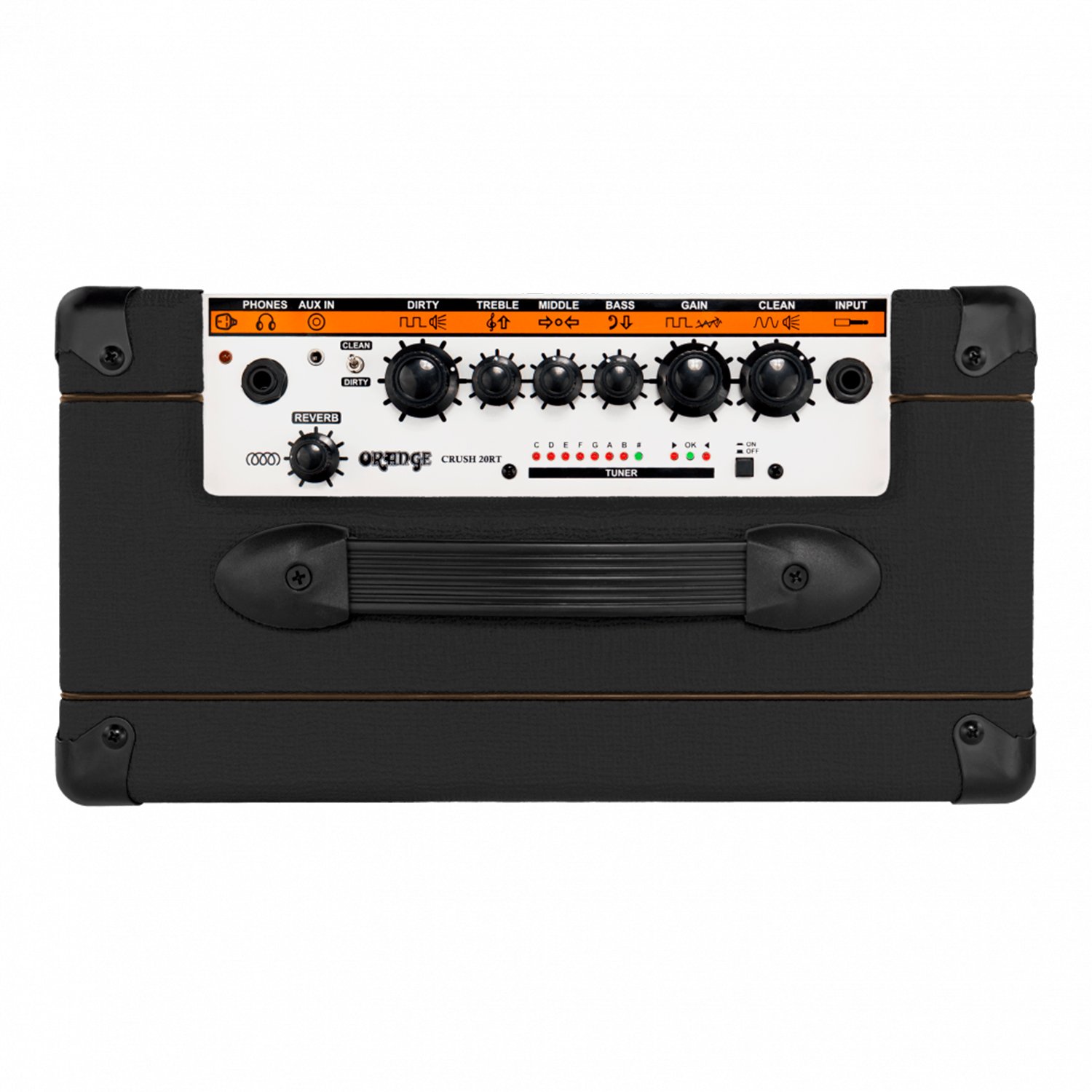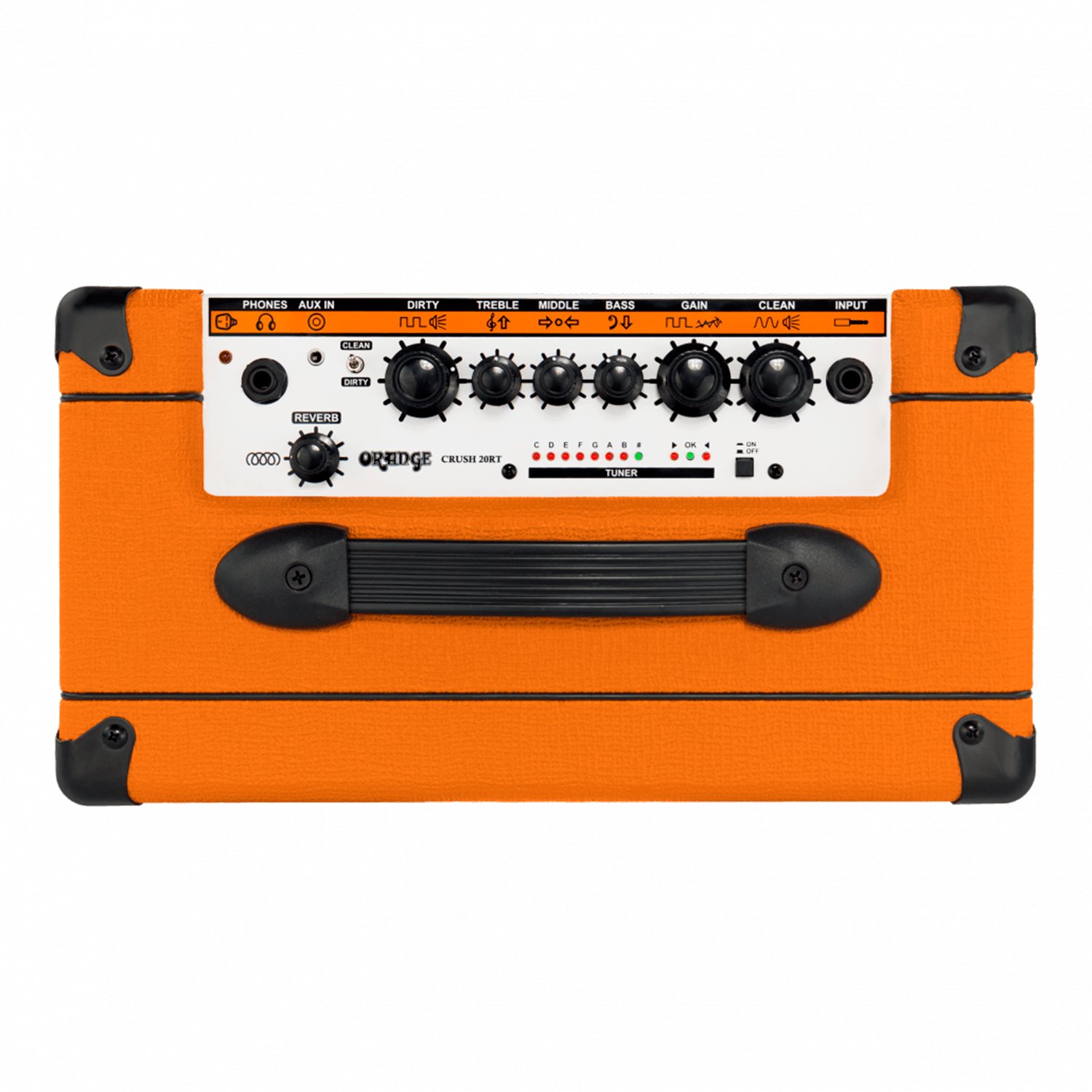 El Orange Crush 20RT te ofrece tonos impactantes con overdrive altamente sensible y niveles de saturación detallada que te dejarán boquiabierto. Con dos canales conmutables por pedal, el preamplificador de 4 etapas del Crush 20RT le brinda tonos enormes y de amplio rango que lo llevarán de regreso a los días embriagadores de los amplificadores de guitarra analógicos de la vieja escuela. Además de eso, obtienes el innovador circuito CabSim de Orange que emula fielmente la potencia de un gabinete Orange de 4 x 12″ a través de la salida de línea / auriculares del Crush 20RT, así como un afinador y reverberación integrados.