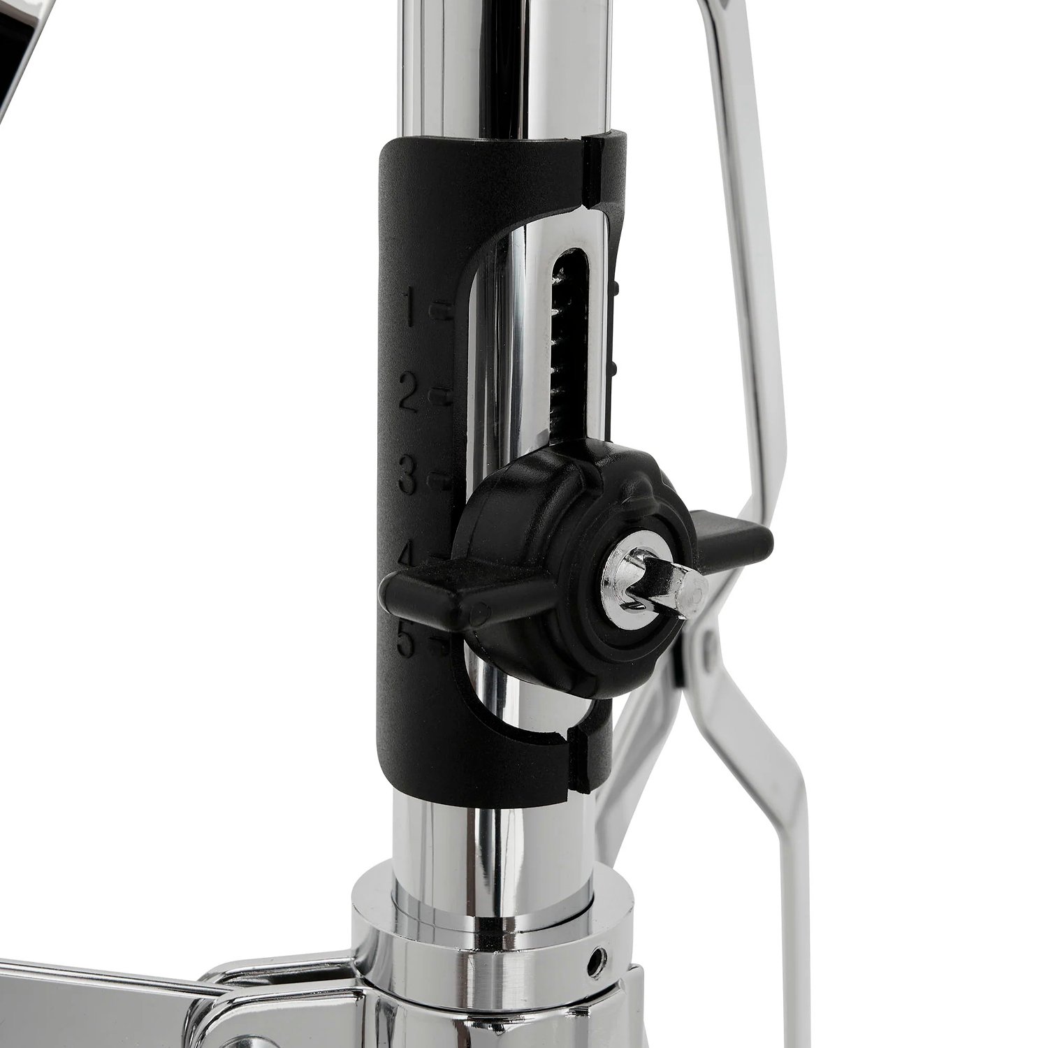 El hardware de la serie DW 3000 ha sido completamente rediseñado desde cero. Suave y sensible, este soporte de tres patas, de peso medio y doble refuerzo, es una excelente opción para bateristas aficionados. Su mecanismo de ajuste de tensión con resorte es preciso y fácil de usar, mientras que el ajuste lateral del ángulo del asiento del platillo y la placa base plegable con agarre de goma antideslizante y espuelas integradas son características imprescindibles para el baterista. *
