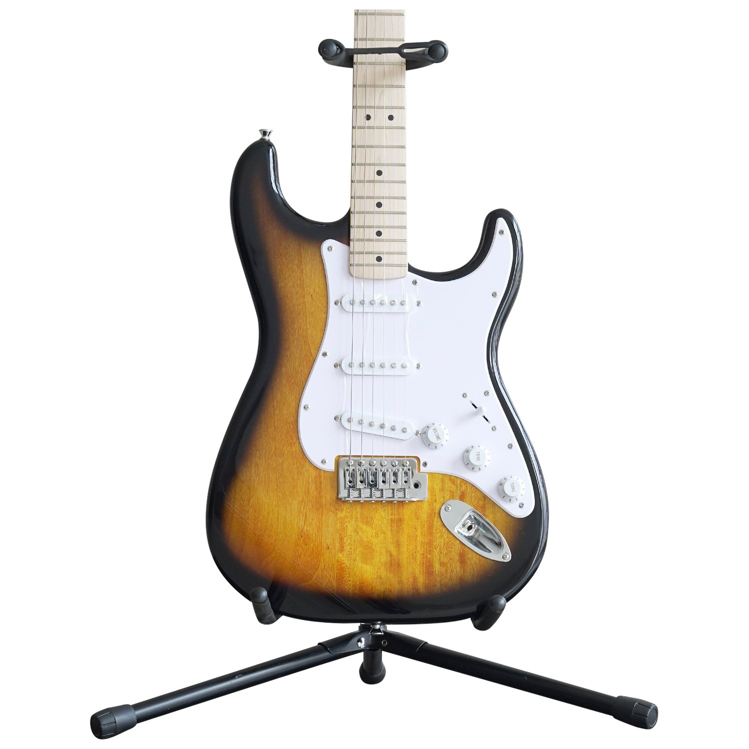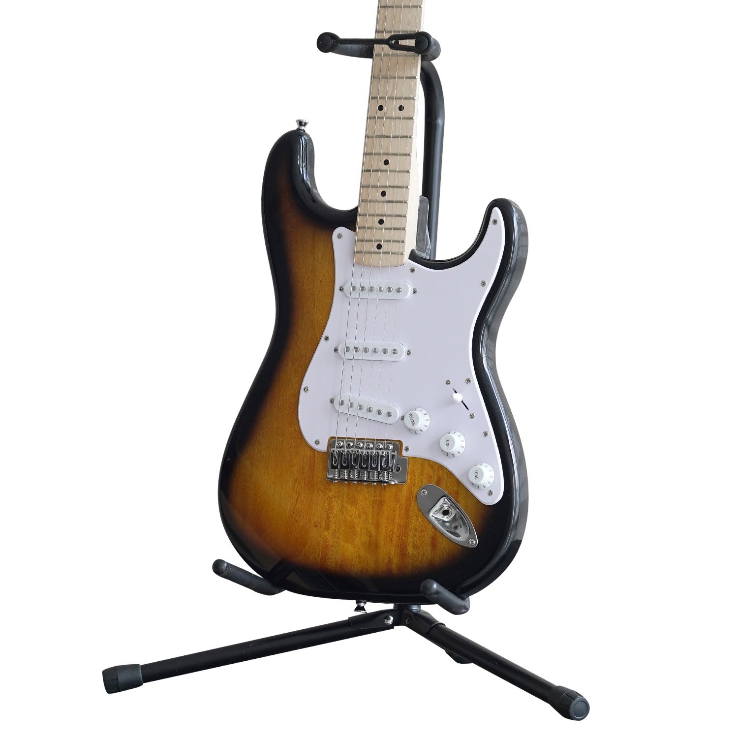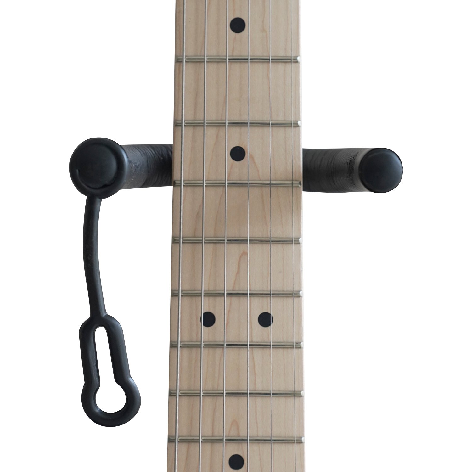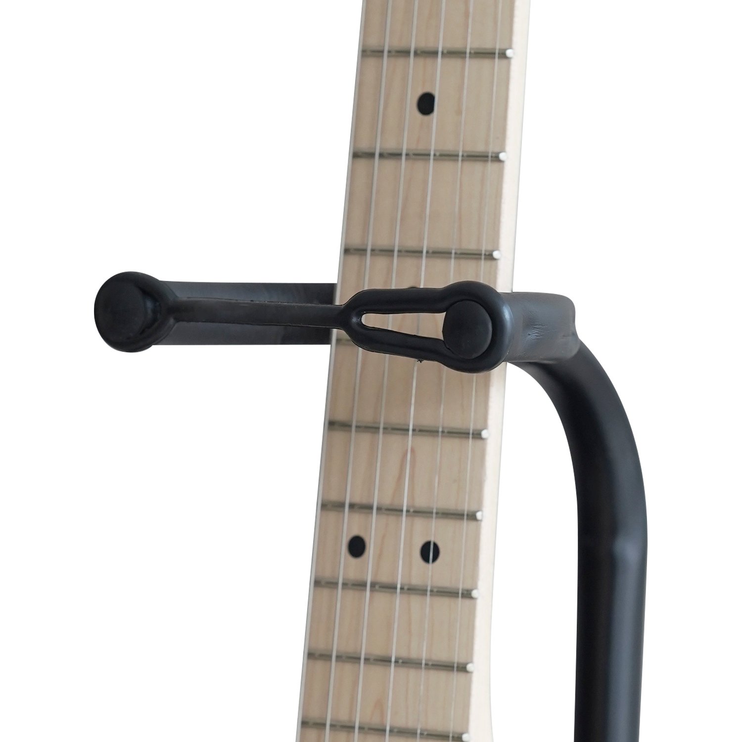 Sus puntos de contacto cuentan con agarres de jebe, que protegen el acabado de la guitarra o bajo, evitando rayones, deslizamientos o daños. Su diseño plegable permite transportarlo y guardarlo fácilmente, siendo ideal para músicos que buscan comodidad y funcionalidad a un precio accesible.