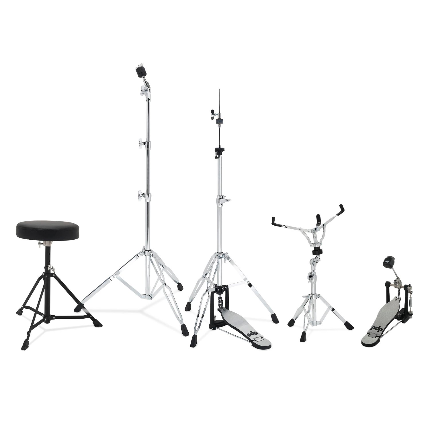 - El hardware incluye pedal de bombo, soporte de charles, soporte de platillos, soporte de caja y trono