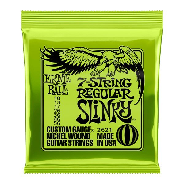El juego Ernie Ball para 7 cuerdas Regular Slinky son profundamente veneradas por su tono de clase mundial. Todas las cuerdas de Ernie Ball están fabricadas con precisión, usando los más altos estándares de calidad y las especificaciones más exigentes para asegurar consistencia, rendimiento óptimo y larga vida útil. Las cuerdas Ernie Ball 7 String Regular Slinky están fabricadas de alambre de acero niquelado que envuelve el núcleo central hexagonal mientras que las planas se fabrican de acero de alto carbono estañado y especialmente templado para ofrecer un sonido muy equilibrado a tu guitarra. Calibres .010, .013, .017, .026, .036, .046, .056
