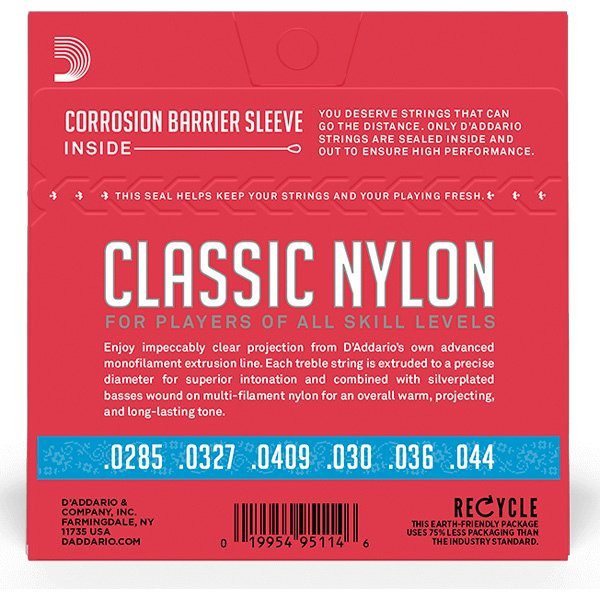 Las cuerdas de guitarra clásica de nylon EJ27H de D’Addario son ideales para principiantes, estudiantes y profesionales por igual. Este conjunto de tensión dura contiene 3 agudos de nylon transparentes y 3 bajos enrollados de cobre plateado para el equilibrio óptimo de tono cálido y proyectante y duradero. Cada conjunto se mantiene con los mismos altos estándares que nuestros conjuntos de cuerdas profesionales y puede usarse para todos los músicos que buscan un conjunto económico pero confiable. El conjunto de tensión normal está disponible para guitarras clásicas de tamaño completo y fraccional de 1/2 y 3/4.