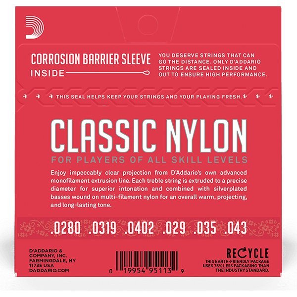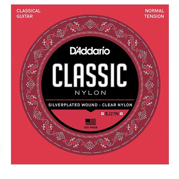 Las cuerdas de guitarra clásica de nylon EJ27N de D’Addario son ideales para principiantes, estudiantes y profesionales por igual. Este conjunto de tensión normal contiene 3 agudos de nylon transparentes y 3 bajos enrollados de cobre plateado para el equilibrio óptimo de tono cálido y proyectante y duradero. Este juego de tensión normal también está disponible para guitarras clásicas fraccionales de 1/2 y 3/4.