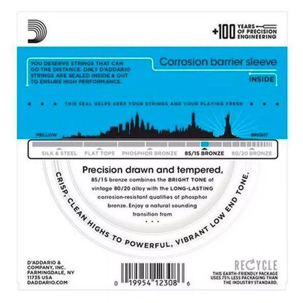 Las cuerdas D’Addario 85/15 Bronze EZ cuentan con una aleación de cobre y zinc especialmente formulada que brinda el tono vintage brillante de 80/20 con las cualidades de vida prolongada del bronce fosforado.