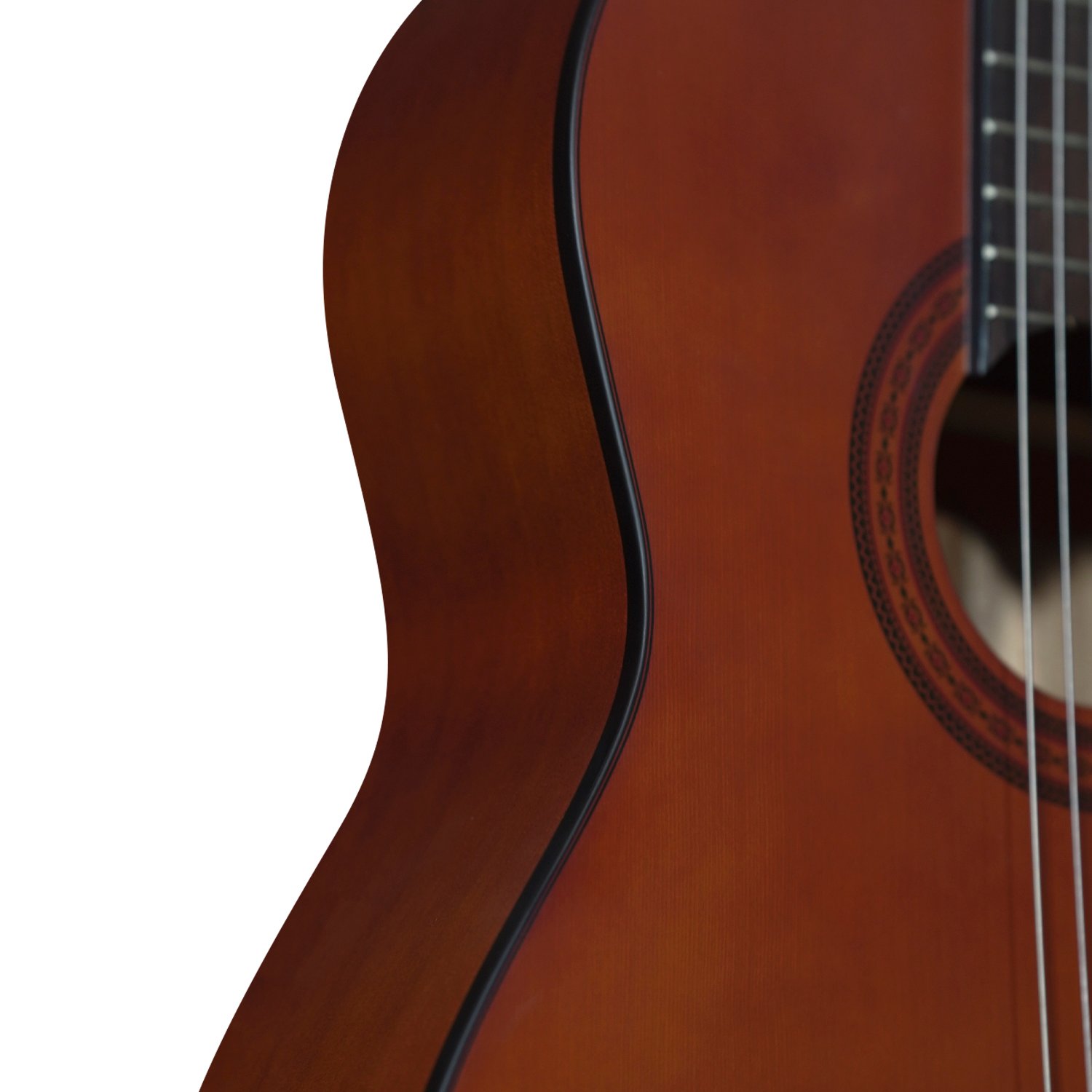 Su diseño redondo mantiene la estética tradicional de la guitarra clásica, proporcionando una ejecución confortable y una buena proyección acústica. Gracias a su construcción acústica, es una excelente opción para quienes buscan la esencia clásica sin necesidad de amplificación.
