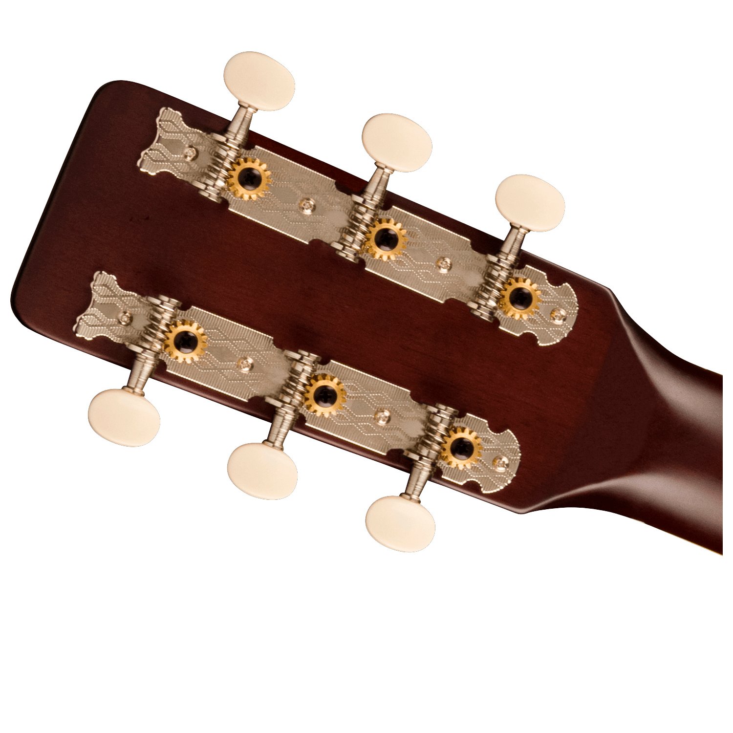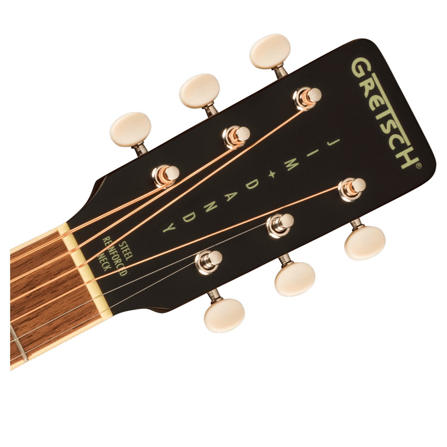 Su cuerpo con refuerzo en X está fabricado con maderas laminadas ligeras seleccionadas para lograr un equilibrio óptimo entre un tono vintage cálido y una durabilidad excepcional, mientras que su mástil en forma de «C» ofrece una sensación acogedora para disfrutar de horas de inspiración clásica. Detalles de época como un puente fijo de estilo vintage, un golpeador con la letra «G», un fileteado pintado a rayas, clavijas de afinación abiertas de 3 en 1 y marcadores de posición de puntos sobredimensionados en el diapasón se combinan para crear una personalidad nostálgica ideal para cualquier concierto o jam session.
