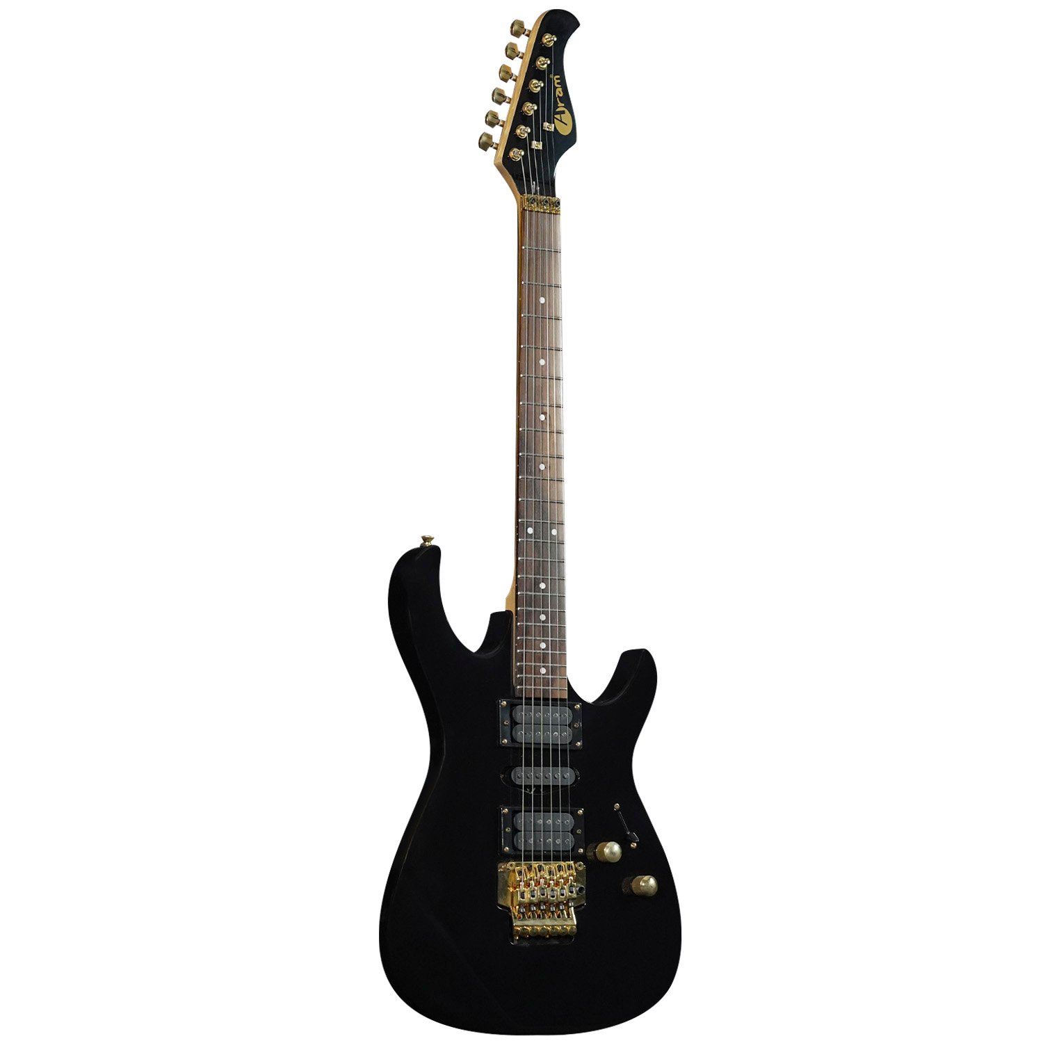 La guitarra eléctrica Memphis tipo Super Strat destaca por su diseño elegante en color negro con detalles dorados, ofreciendo una combinación perfecta entre estética moderna y gran versatilidad sonora. Su configuración de pastillas HSS (1 simple y 2 dobles) permite obtener desde tonos limpios y definidos hasta sonidos potentes y con mayor ganancia, ideal para diversos estilos musicales.