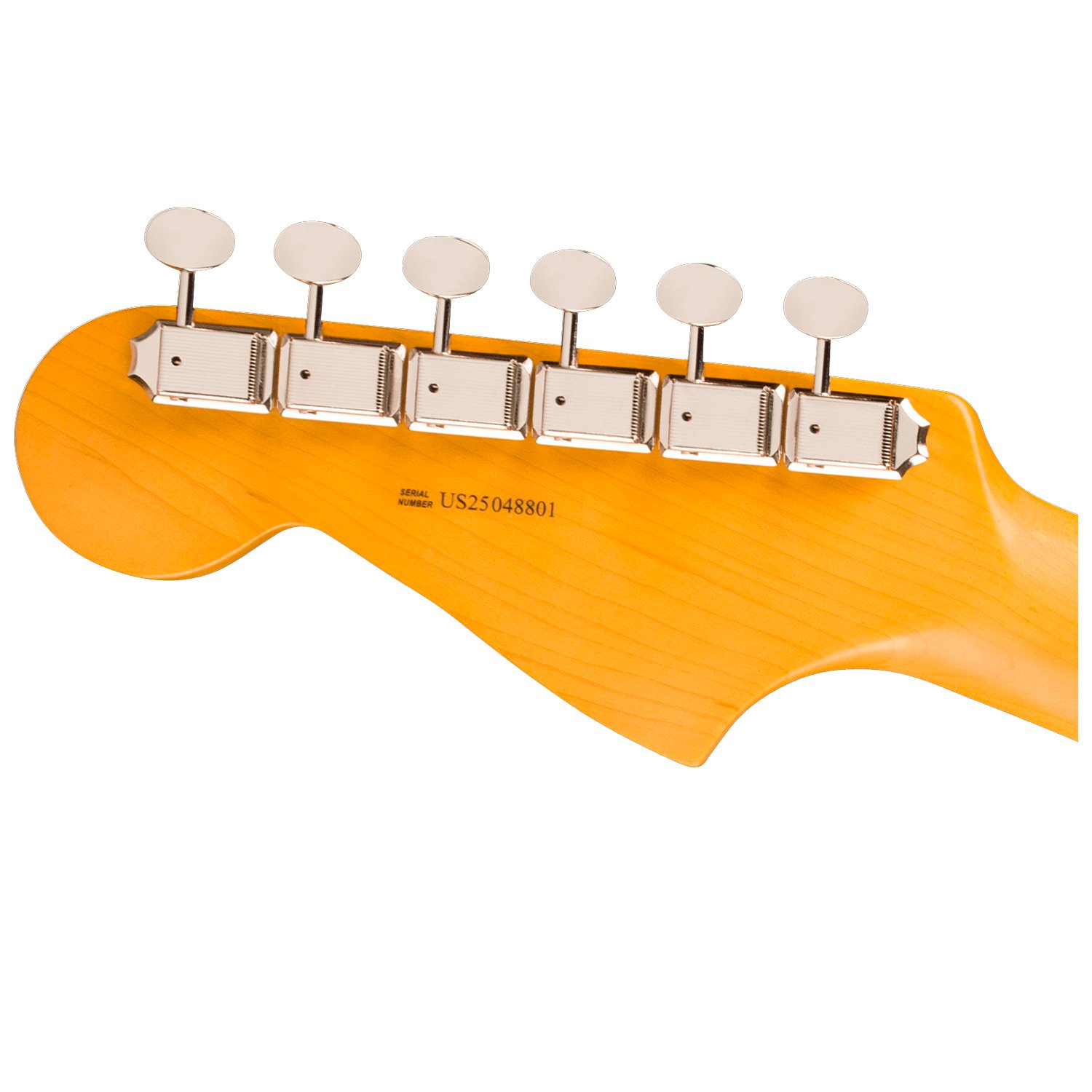 En su interior, las pastillas Coastline™ ’65 Jazzmaster® de inspiración vintage ofrecen profundidad, ataque y brillo, mientras que el elegante mástil con perfil «Modern C» proporciona una comodidad y una sensación al tacto excepcionales. Las clavijas escalonadas Fender ClassicGear™ combinan un aspecto clásico con una afinación precisa. Con acabados clásicos envejecidos y colores característicos de Fender®, este instrumento de nivel profesional suena tan bien como parece.