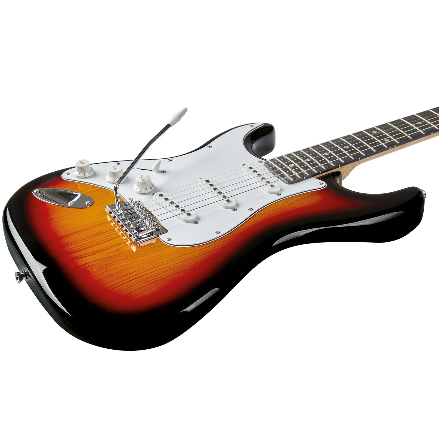 La S-300 Sunburst para Zurdos es la guitarra eléctrica de la serie «Tribute Starter» de Eko Guitars, con cuerpo de álamo, mástil de arce y diapasón de resina. Está equipada con pastillas Eko en configuración SSS, control de volumen, dos controles de tono, selector de 5 posiciones y puente con palanca de trémolo. Ideal para iniciarse en la guitarra eléctrica con un instrumento de alto rendimiento, cómodo y con una excelente relación calidad-precio.