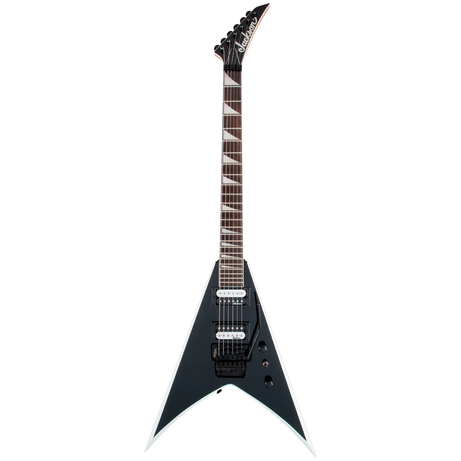Entre sus especificaciones destacan dos pastillas humbucker Jackson de alta salida con imanes cerámicos, selector de tres posiciones, puente trémolo doble bloqueo Floyd Rose® de Jackson, botones de correa estándar y clavijas selladas de fundición a presión.