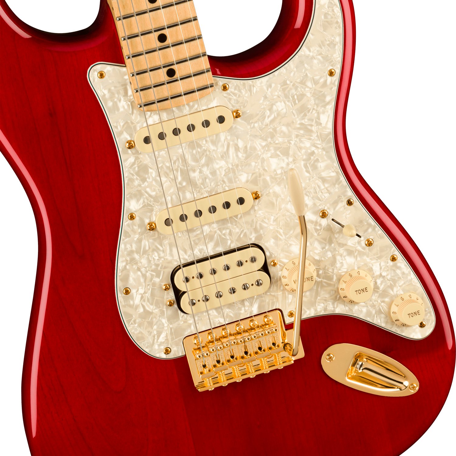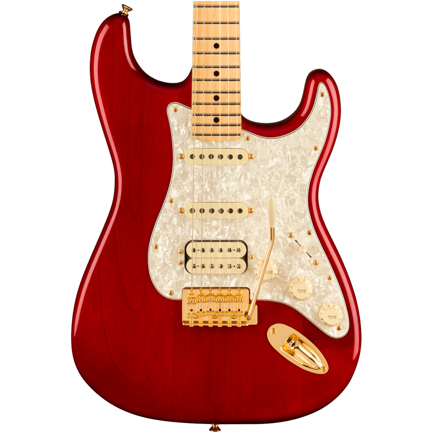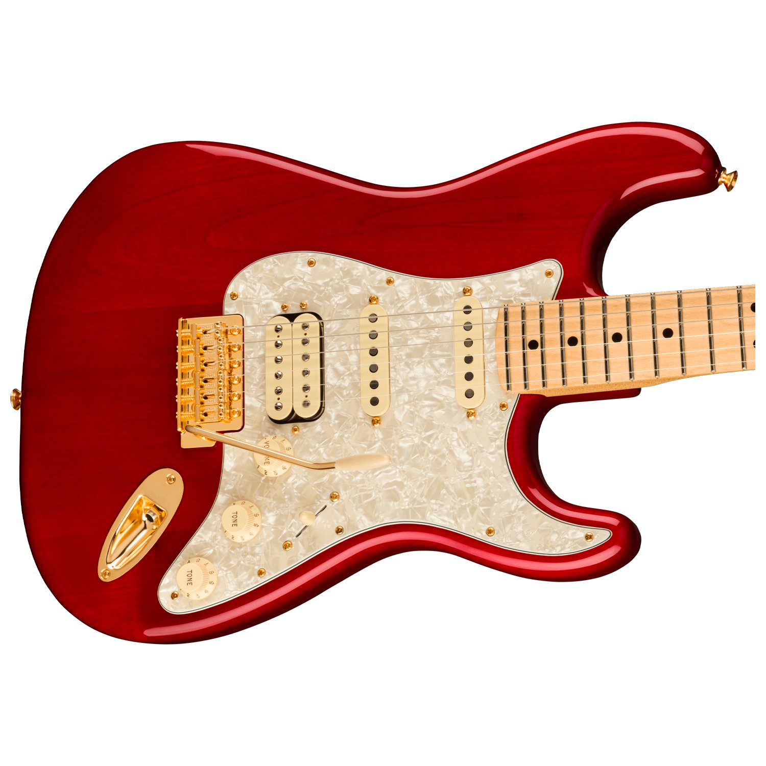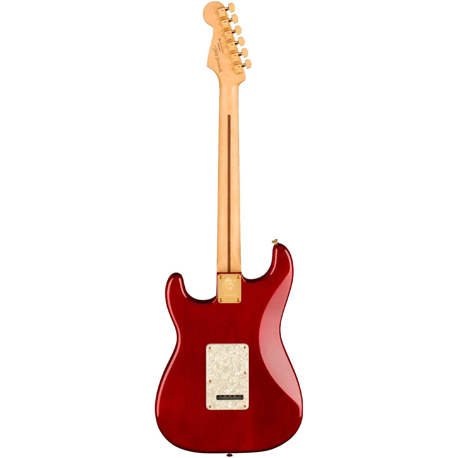 Con un vibrante acabado en cerezo transparente y herrajes completamente dorados, la Tash Sultana Stratocaster® luce una estética atractiva que combina con sus accesorios de alta gama: la claridad y el brillo de las pastillas Yosemite de bobina simple Strat se combinan con la potente pastilla humbucker del puente Double Tap™ para ofrecer una amplia gama de opciones tonales al alcance de la mano. El mástil de arce en forma de «C» moderna, con radio de 9.5″ y 22 trastes medium jumbo, proporciona una ejecución moderna y cómoda, mientras que el trémolo sincronizado de estilo vintage ofrece la clásica acción de vibrato de una Strat.