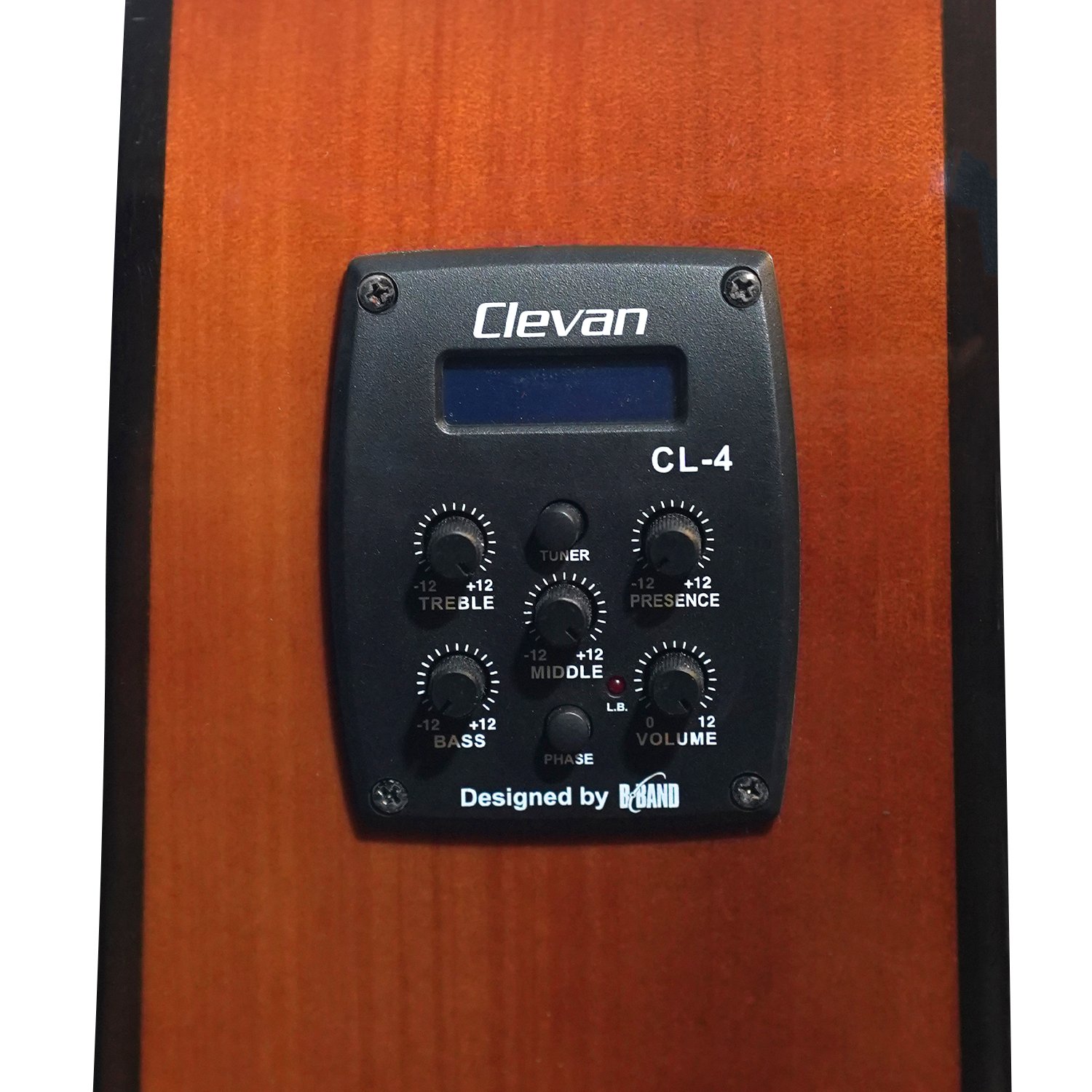 La Clevan SAC10E es una guitarra electroacústica diseñada para ofrecer versatilidad y comodidad tanto en formato acústico como amplificado. Equipada con cuerdas de metal, brinda un sonido brillante, definido y con buena proyección, ideal para diversos estilos musicales.