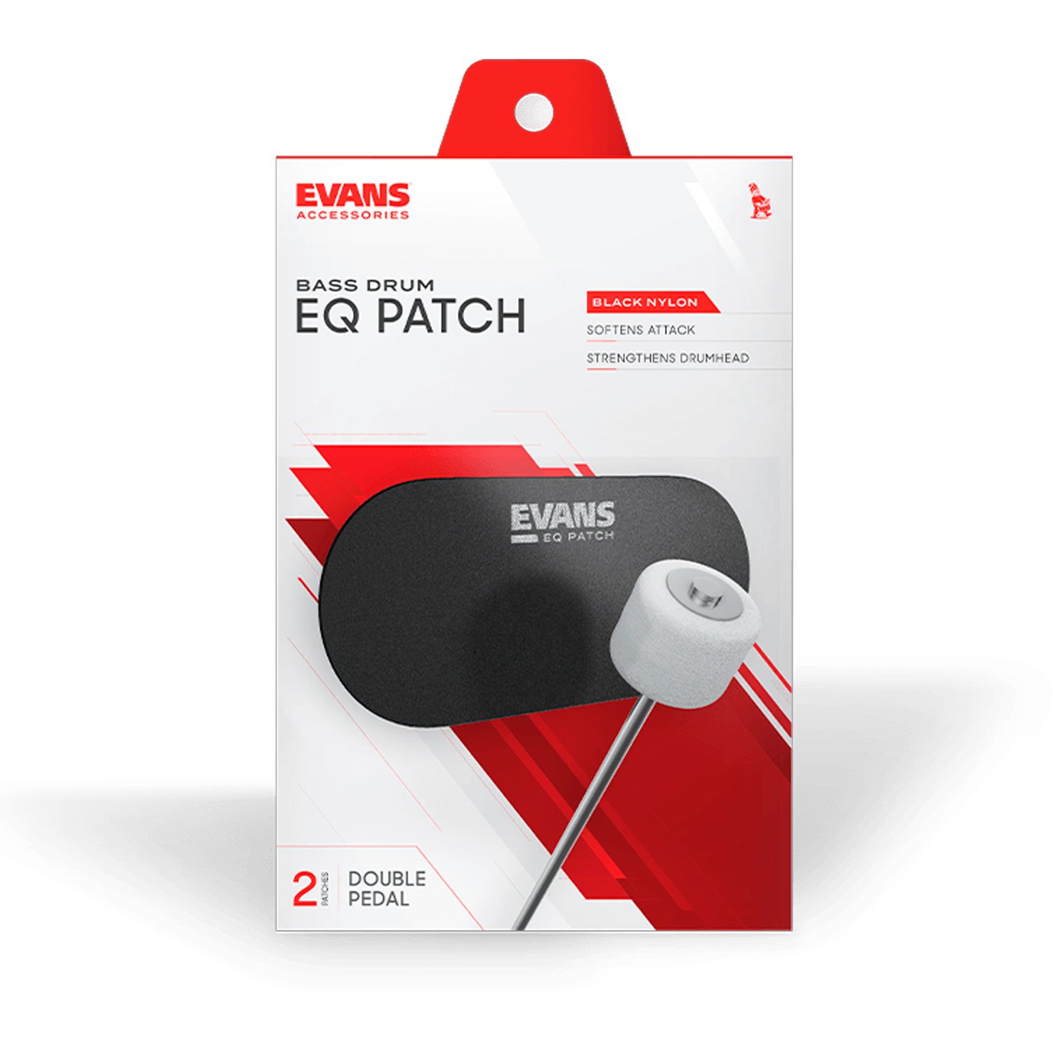 EVANS EQPB2 es un parche de bombo de nailon flexible antideslizante de color negro para pedales dobles, que suaviza el ataque y fortalece el parche sin afectar la calidad del sonido.