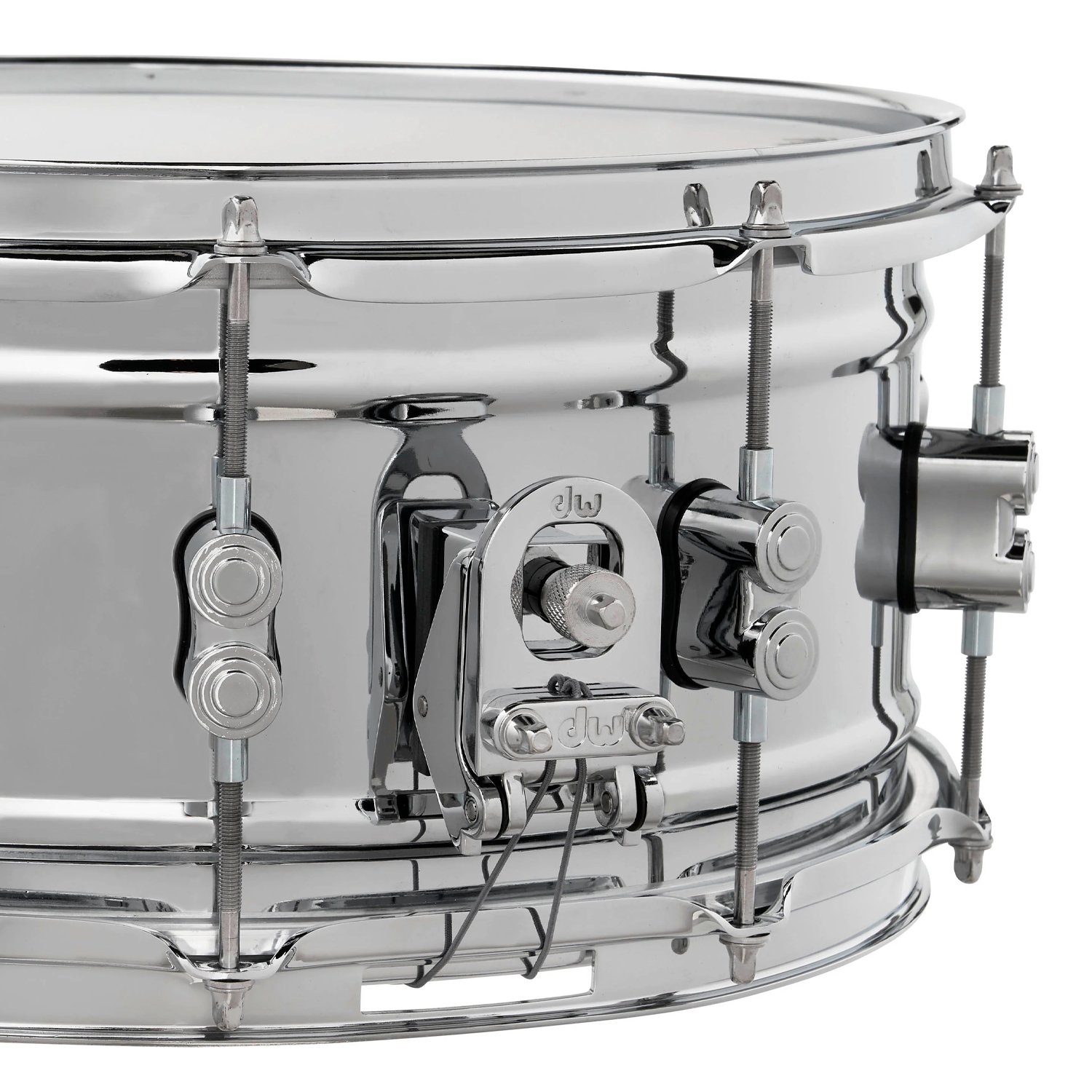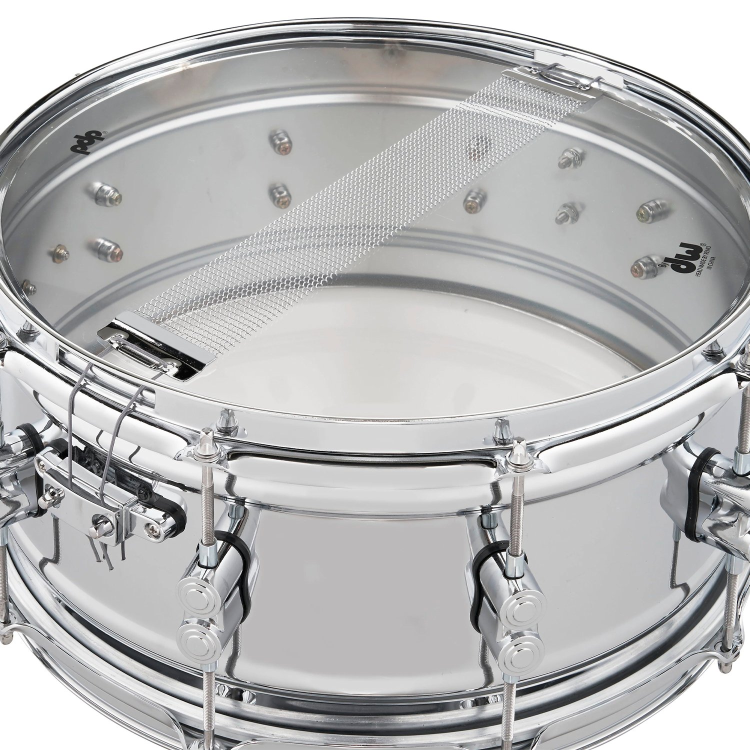 Esta caja de acero de la serie Concept cuenta con un fino casco de acero de 1 mm, laminado y con doble reborde, pulido para un brillo llamativo. Los cascos de acero ofrecen un ataque clásico y atemporal con matices musicales, mientras que un casco más delgado produce menos tensión y una tonalidad más baja. Los herrajes cromados incluyen elegantes soportes de doble torreta y accesorios DW de alta gama, como un MAG Throw-off, varillas de afinación True-Pitch y parches Remo. Esta caja está disponible en 6,5′ x 14′. *
