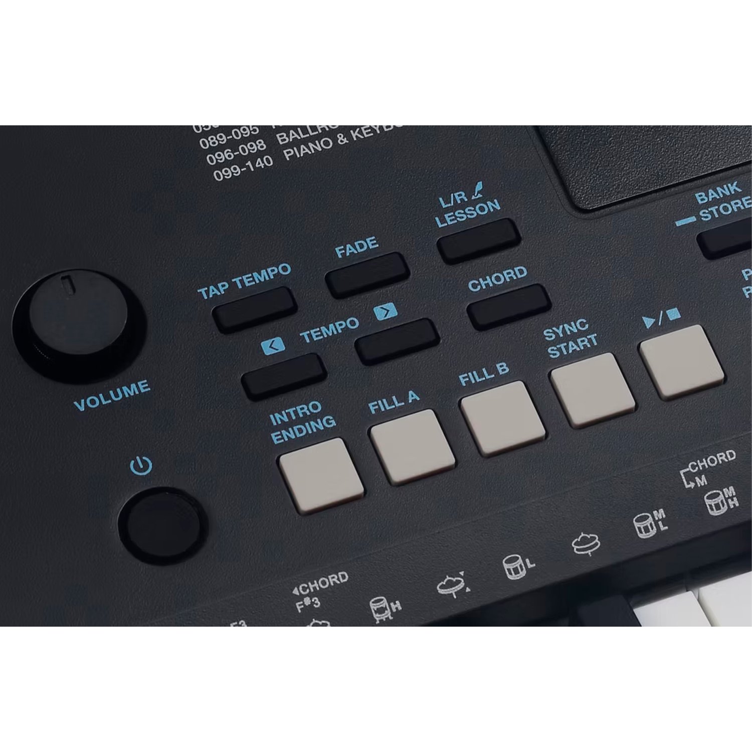 Control de estilo: Inicio/Parada • Inicio de sincronización • Introducción/Finalización • Principal A/Relleno A • Principal B/Relleno B • Activación/desactivación de acordes • Fundido de entrada/salida • Volumen de acompañamiento