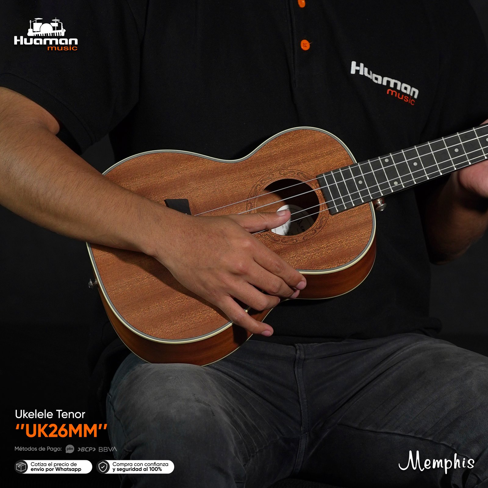 El Ukulele Tenor Memphis combina la calidez y resonancia de la madera de okume con un diseño clásico y elegante, ofreciendo un sonido profundo, equilibrado y con gran proyección. Su tamaño tenor brinda un tono más lleno y grave que los modelos soprano o concierto, ideal para músicos que buscan un instrumento versátil, cómodo y con mayor presencia sonora.